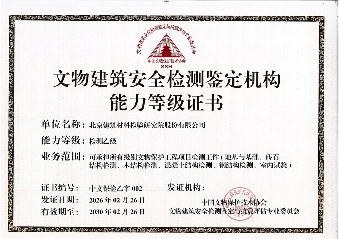 近期,BMT北京检验正式取得《文物建筑安全检测鉴定机构能力等级证书》,标志着其在文物建筑保护与安全检测领域的专业能力、技术实力和综合服务水平获得国家级权威认可,进一步拓展了科技赋能城市更新的应用场景。
