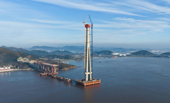 甬舟铁路关键工程新突破:西堠门公铁合建桥主塔刷新世界海中桥梁高度纪录
