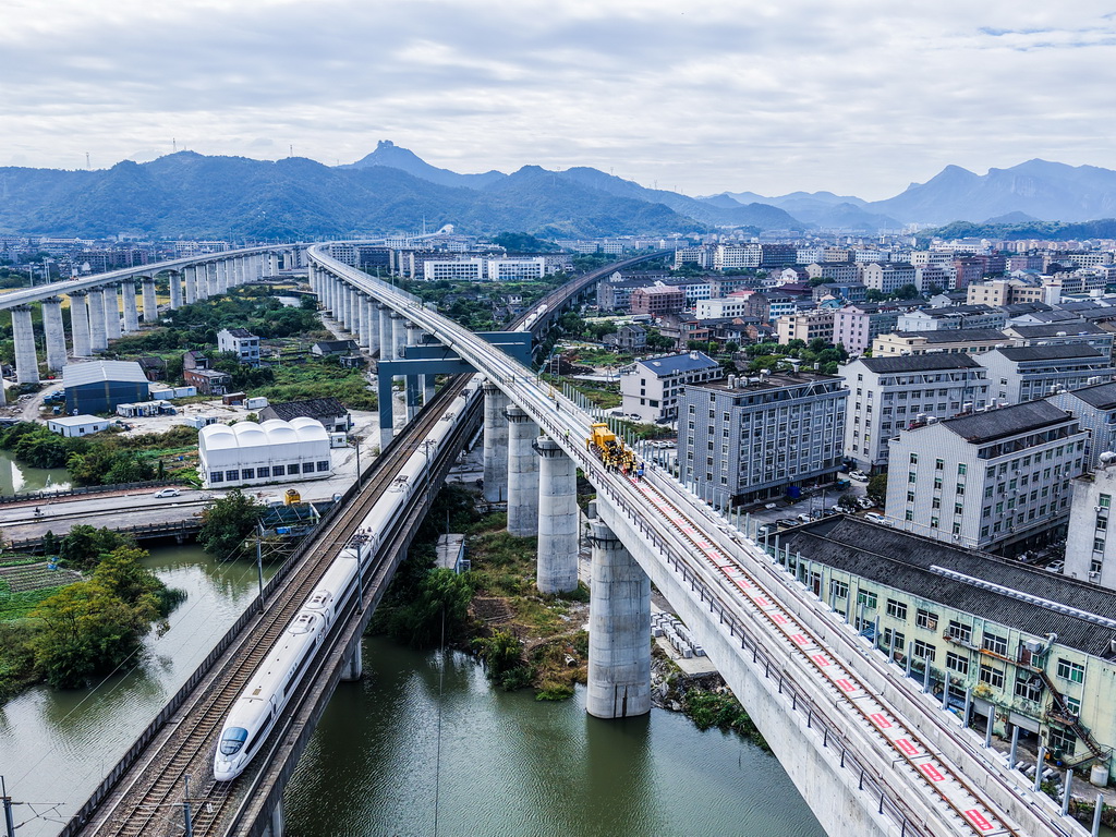 11月5日,杭台高铁温岭至玉环段正式启动铺轨作业,项目从土建施工阶段全面转入轨道工程建设阶段。