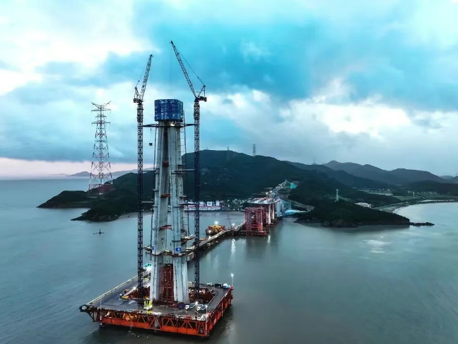 进度刷新,中建西部建设助力世界最高海中桥塔——西堠门公铁两用大桥5号主塔上塔柱成功合拢