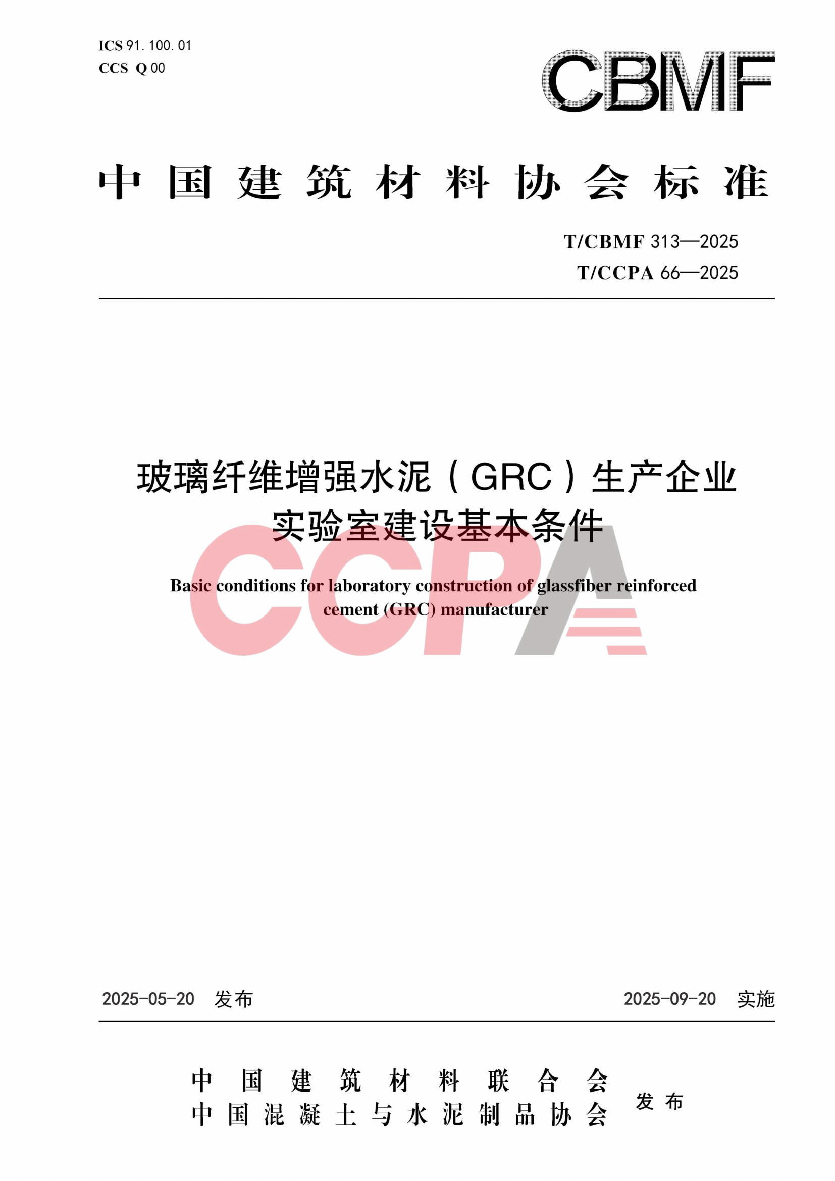《玻璃纤维增强水泥(GRC)生产企业实验室建设基本条件》T/CCPA 66—2025(T/CBMF 313)