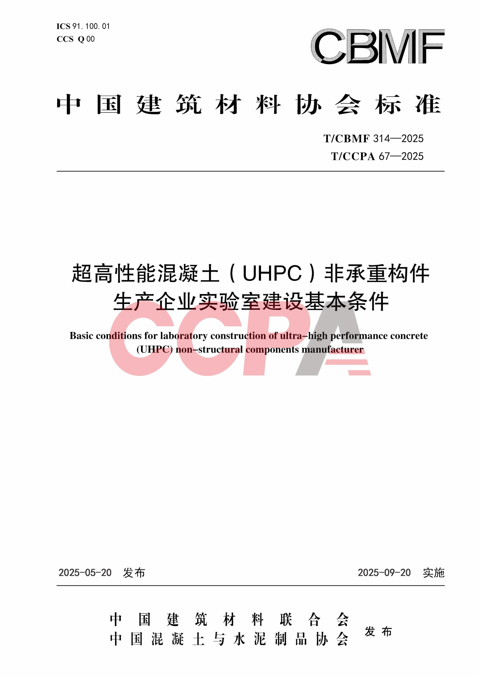 《超高性能混凝土(UHPC)非承重构件生产企业实验室建设基本条件》T/CCPA 67—2025(T/CBMF 314)
