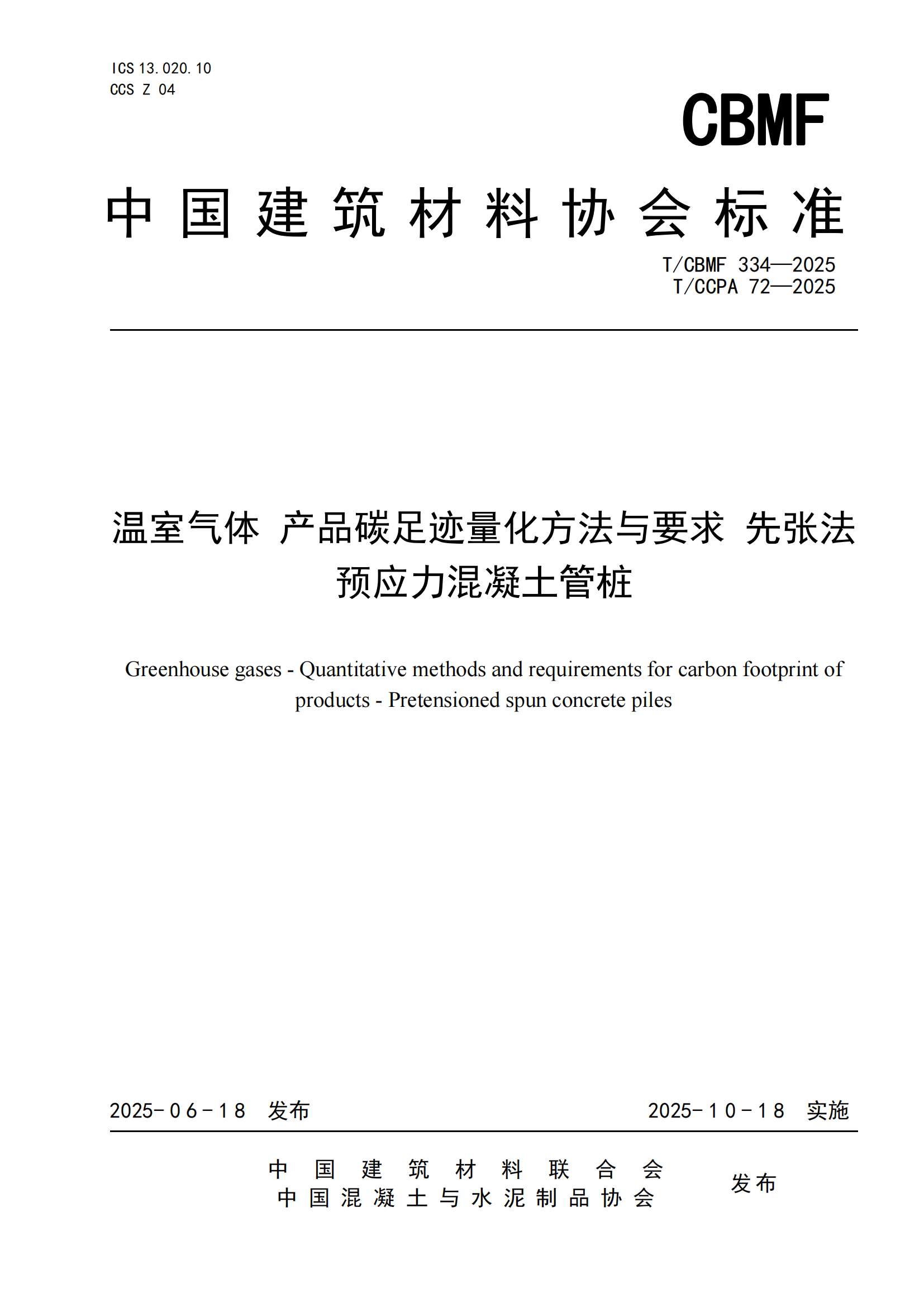 《温室气体 产品碳足迹量化方法与要求 先张法预应力混凝土管桩》T/CCPA 72—2025(T/CBMF 334)