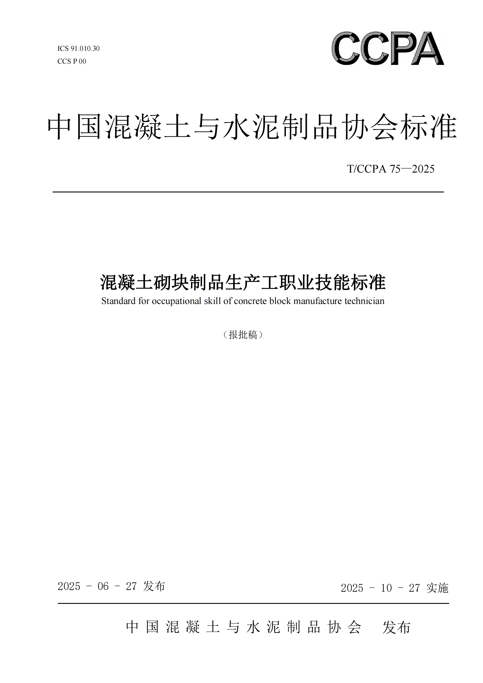《混凝土砌块制品生产工职业技能标准》T/CCPA 75—2025