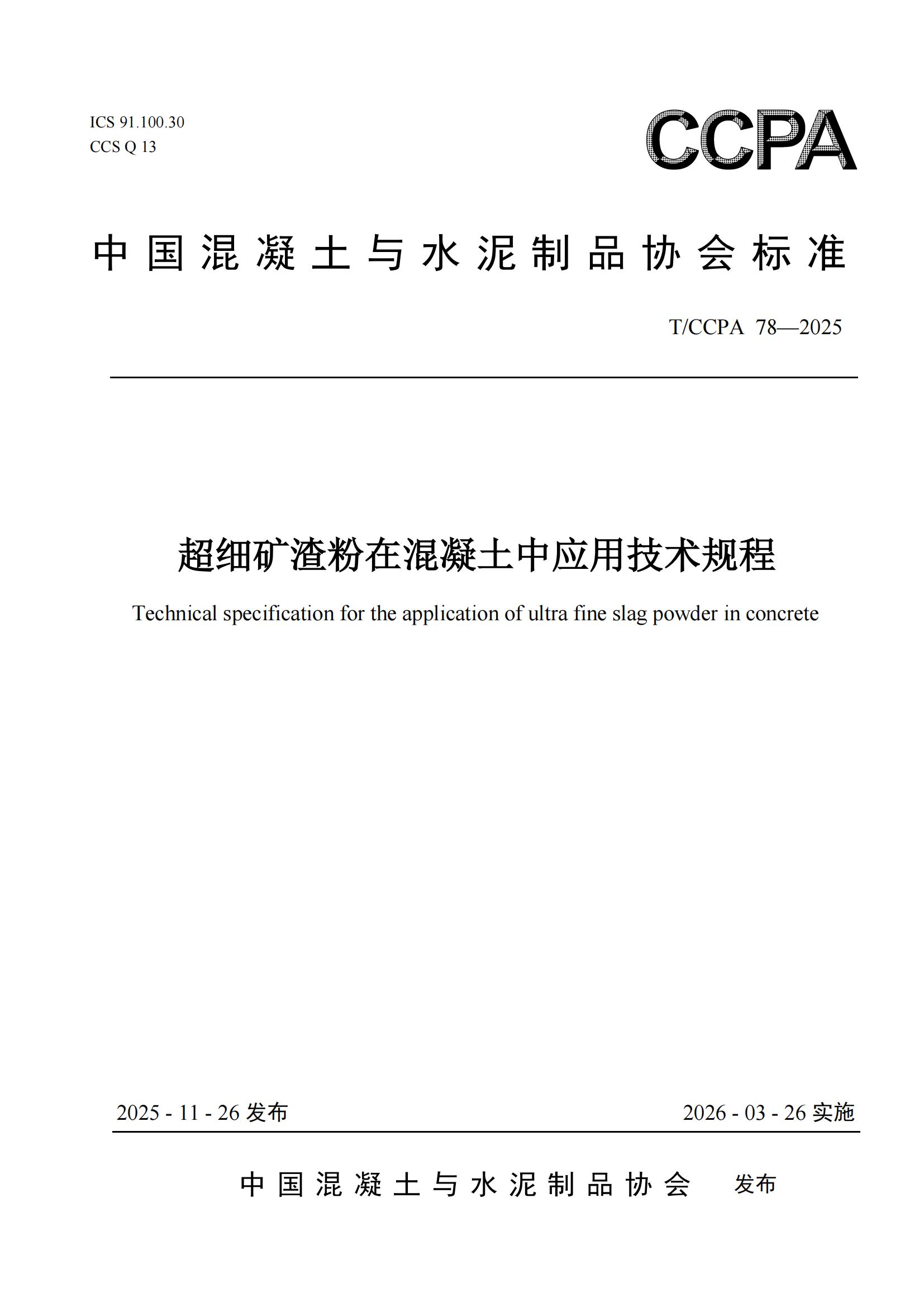 《超细矿渣粉在混凝土中应用技术规程》T/CCPA 78—2025