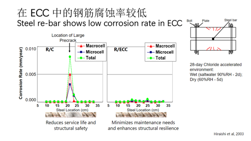 ▲ECC中的钢筋腐蚀率与普通混凝土的对比