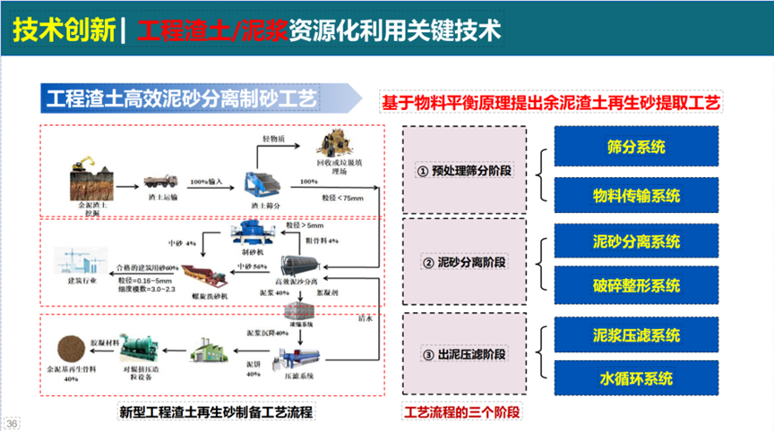 建筑垃圾资源化利用方面,邢峰院士介绍了在桥梁、建筑等拆除之后,回收利用的再生混凝土可作为再生粗骨料、再生细骨料、再生微粉,重新应用于混凝土、砂浆/环保砖、公路基层等;采用纳米SiO2和CO2活性激发技术,可以重构孔结构,大大降低骨料吸水率,并提升再生混凝土强度25%以上,解决了再生骨料混凝土力学性能和耐久性差的技术难题。在城市地铁盾构施工、地下管廊施工、基坑开发工程中,开发了新型泥砂分离工艺与装备和再生混凝土设计与制备方法,形成了工程渣土/泥浆资源化利用关键技术。