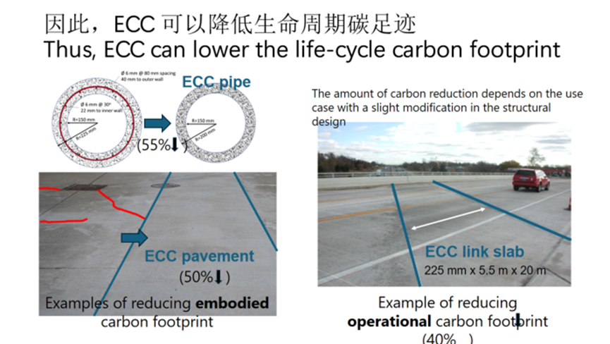 而在结构使用阶段的运营碳排放,主要与结构的维护和修复相关。ECC可以通过减少维护和修复需求,有效降低运营碳排放。