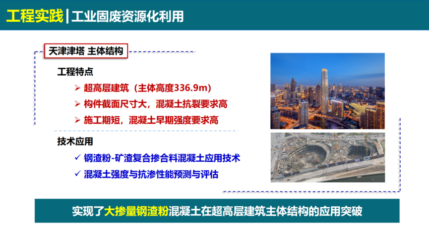 ▲大掺量钢渣粉应用示范项目(天津津塔主体结构)