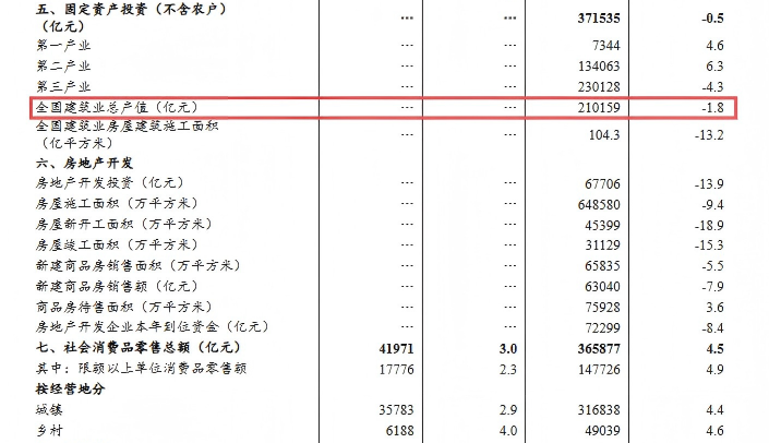 全国建筑业前三季度总产值210159亿元