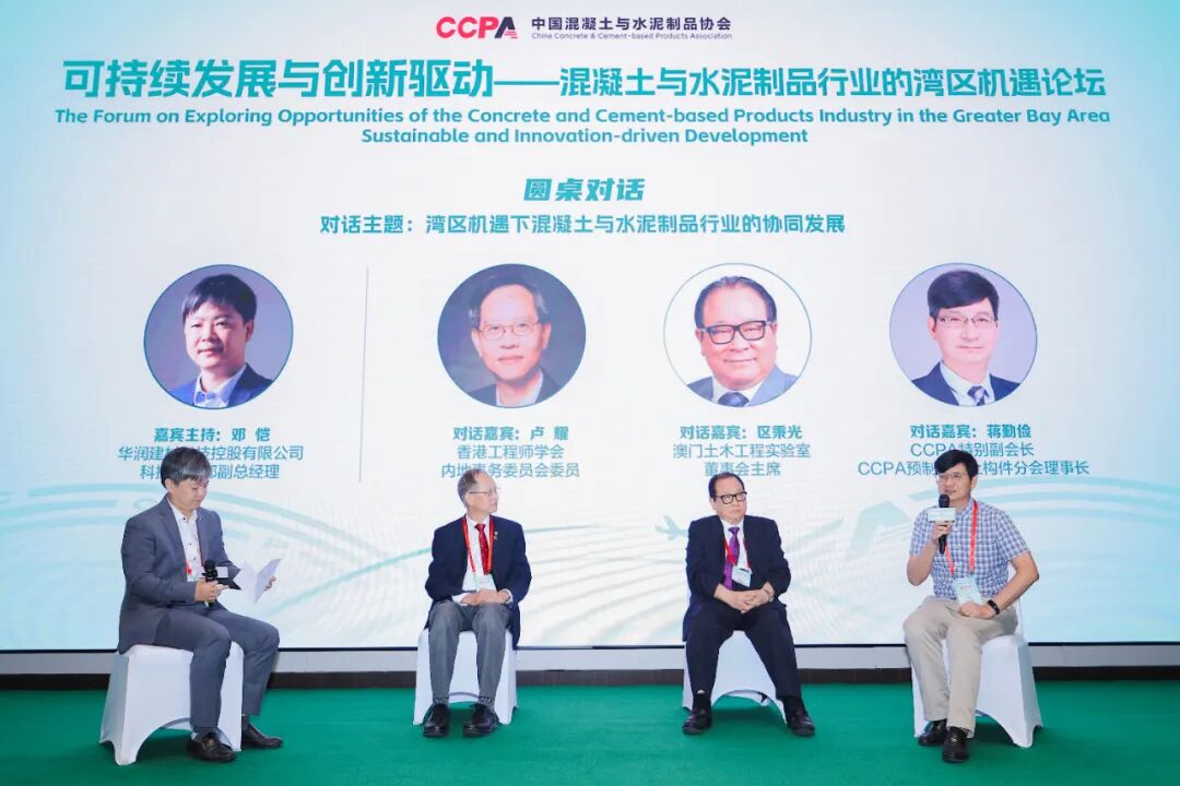 来自香港混凝土学会、澳门土木工程实验室质量及规范厅、香港工程师学会材料界别咨询委员会、华南理工大学建筑系的专家作主旨发言。行业专家、技术大咖、产业链伙伴面对面,围绕“湾区机遇下混凝土与水泥制品行业的协同发展”的精彩对话,为两岸三地深化合作开辟了新思路。