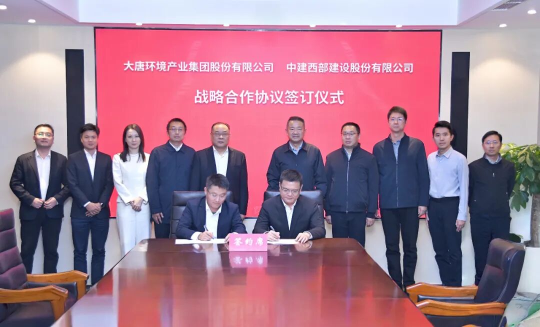 大唐环境产业集团办公室、战略投资部(证券资本部、企业管理部)、特许经营分公司、新科技产业分公司相关负责人;中建西部建设供应链部、研究院负责人等参加签约仪式。