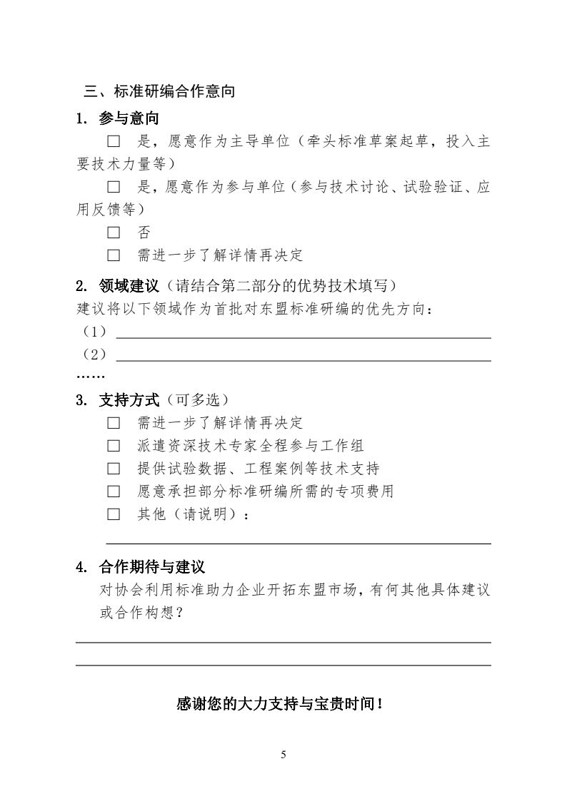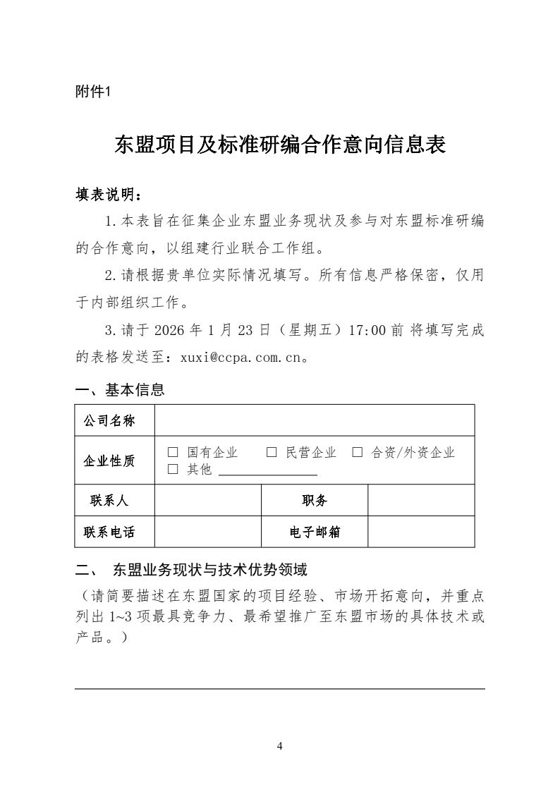 为确保本项工作精准服务行业需求并汇聚企业力量,现面向行业头部骨干企业征集东盟市场标准化工作需求与参与标准研编工作的合作意向。本次征集的反馈,将作为确定首批合作领域、组建标准研编工作组及规划平台资源投入的直接依据。