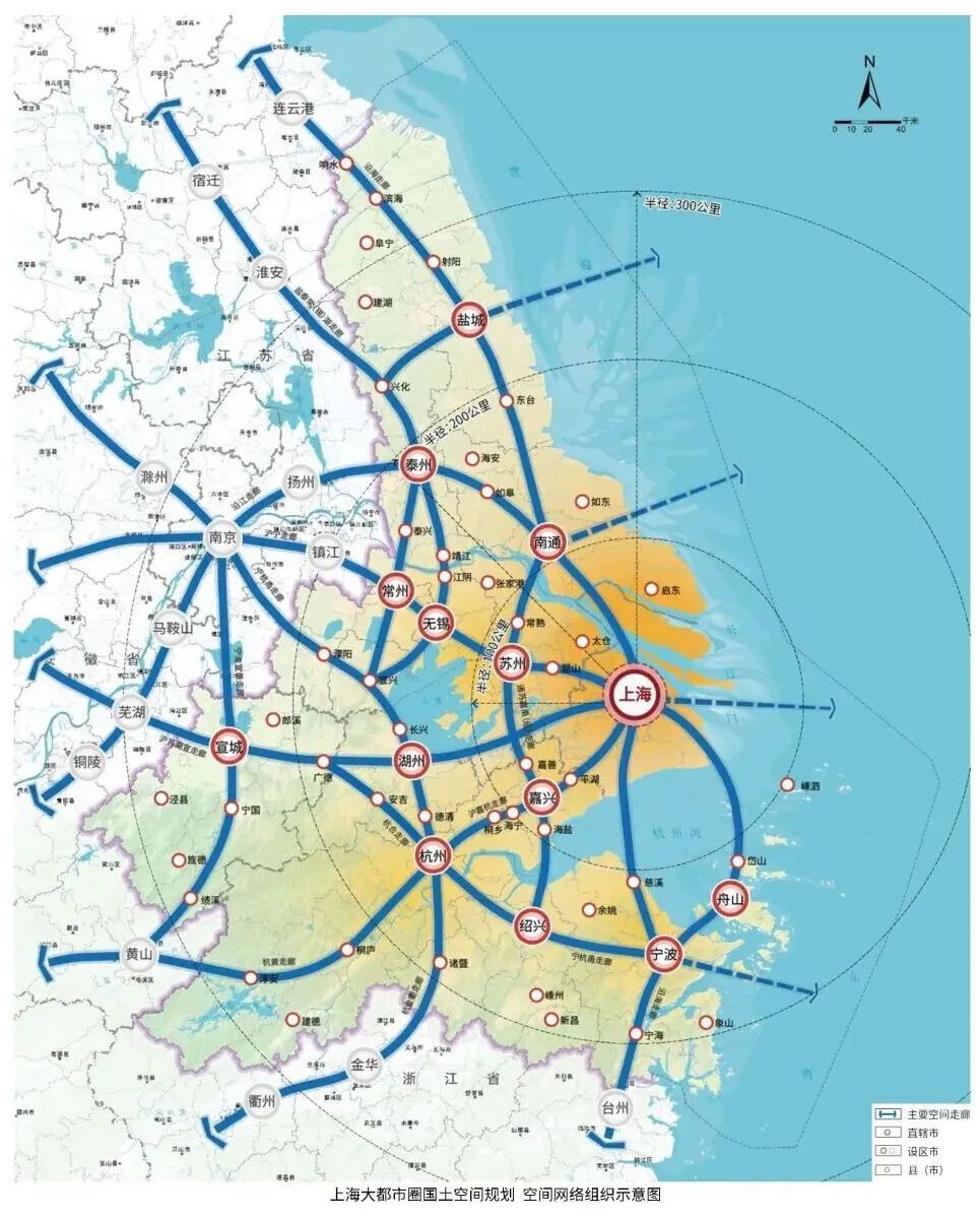 《规划》草案综合考虑经济社会发展、区域城镇网络、自然资源禀赋、产业联系紧密程度和轨道交通可达范围,将上海和周边协同联动城市放在一张底图上,共同谋划推动上海大都市圈高质量一体化发展。除上海市外,江苏省苏州市、无锡市、常州市、南通市、盐城市、泰州市,浙江省杭州市、宁波市、湖州市、嘉兴市、绍兴市、舟山市,安徽省宣城市规划在大都市圈内。